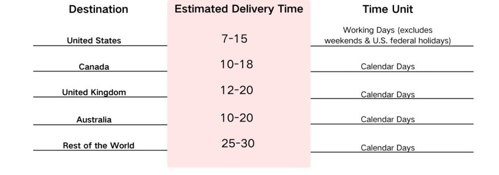 Each country’s logistics time is different and will be affected by the speed of package processing by local logistics providers.